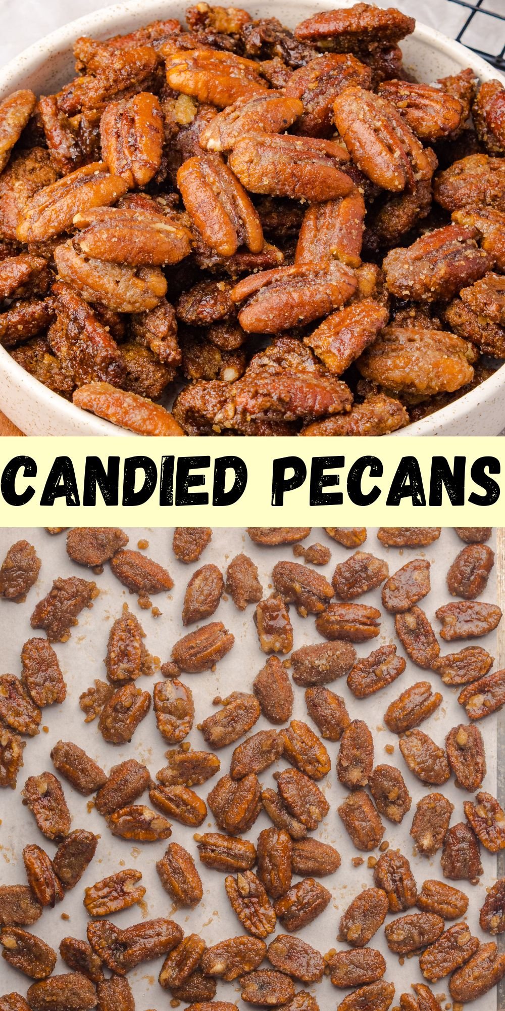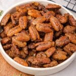 The best part is how versatile they are. A batch makes the perfect homemade gift for teachers, neighbors, or friends, and they can easily be packaged in little jars or bags with a ribbon. Beyond gift giving, candied pecans add a sweet crunch to salads, make a decadent topping for ice cream or cinnamon rolls, and are always a hit as a quick snack on their own. While they taste amazing year-round, their warm, spiced flavor truly shines during the holiday season.