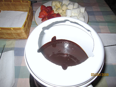 We've done this before and everyone LOVED it. We also had pound cake cut into squares. There's just something fun about having all those choices and then the creamy chocolate to dip...yum.
