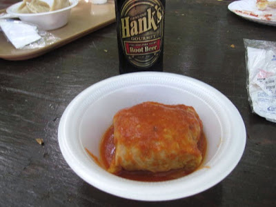 Stuffed cabbage with some good old fashioned root beer in the back ground.