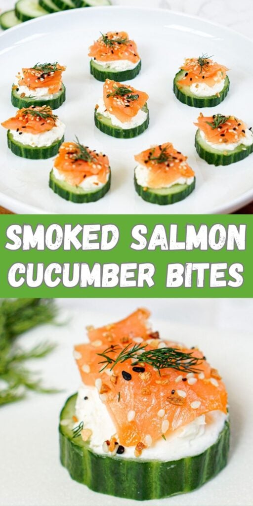 Smoked salmon cucumber bites are incredibly versatile and can be served in so many ways. They make a stunning addition to a brunch buffet alongside fresh fruit salad, bacon and sausage, quiche and mimosas, adding a touch of elegance without any extra fuss. They’re also a fantastic appetizer for dinner parties, pairing beautifully with Pan Roasted Swordfish with Cherry Tomatoes and Capers, Grilled Prime Rib Roast, or Angel Hair Pasta With Blush Sauce. Arrange them on a platter with a few lemon wedges and extra fresh herbs for a polished presentation.